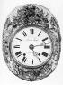12. A small Haut-Saône clock with a painted iron dial. Both the appearance and the construction do significantly differ from the customary standard that was created in the Jura in this period. ca. 1730 | |