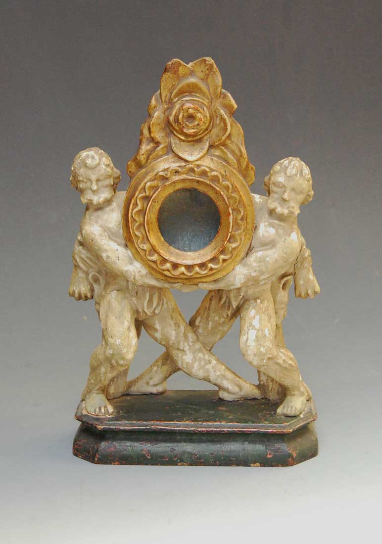 Two Herculesses, an Italian (?) polychrome 'porte montre' (pocket watch stand), 1st half 18th century.