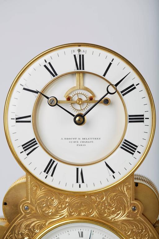 An exquisite, almost as new, skeletonized, astronomical multi - barrel year - duration clock with perpetual calendar, equation of time and half/ hour self strike. By Jean - Baptiste Delettrez a Paris With Achile Brocot escapement