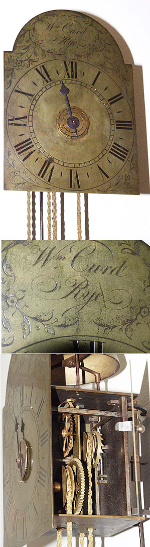 47 Wall182 An attraxtive small, late 18th century wall clock, signed: Wm Card, Rye.