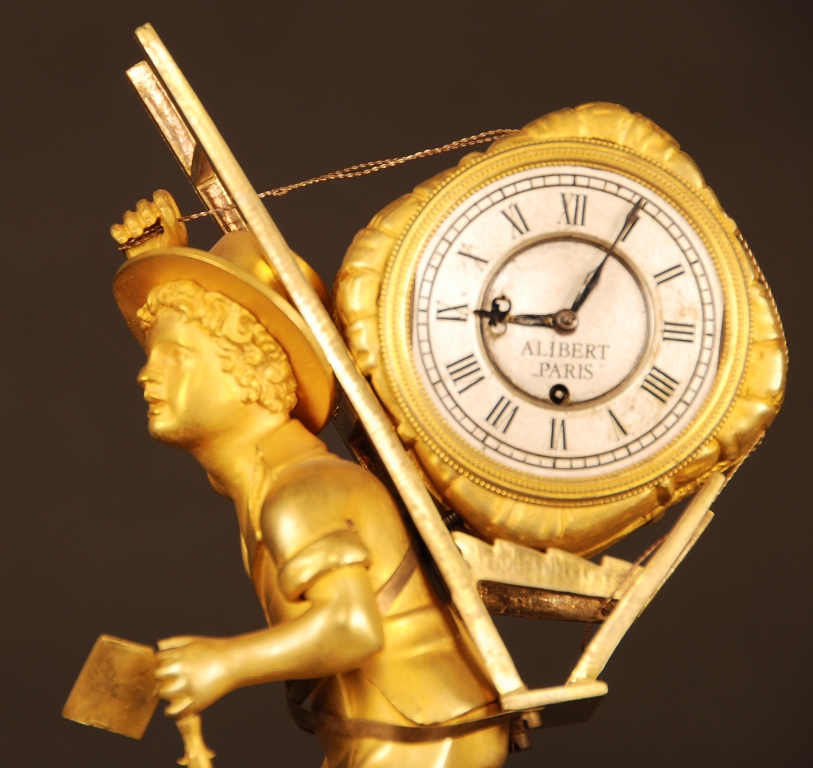 Musical "Portefaix" clock signature: Alibert - Paris. A slight similar clock is printed on page 343 in the Encyclopédie de La Pendule Francaise, Pierre Kjelberg.