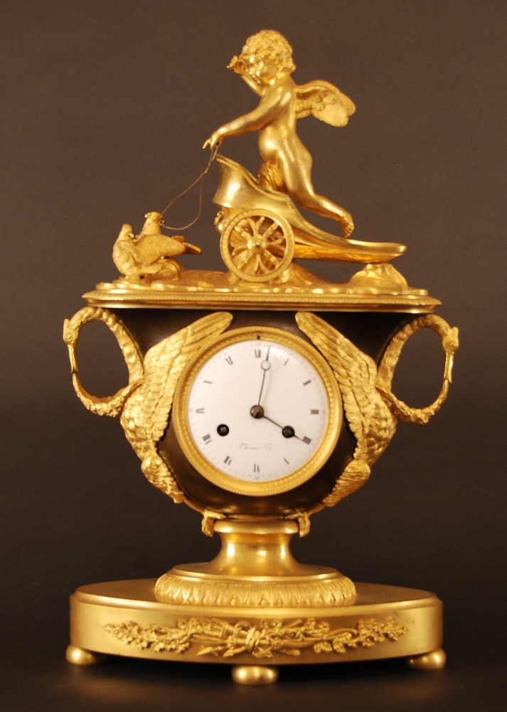 Signature: Thomas a Paris. A similar clock is printed on page 377 in the Encyclopédie de La Pendule Française, Pierre Kjelberg and on page 128 in Die Französische Bronzeuhr by Elke Niehüser.