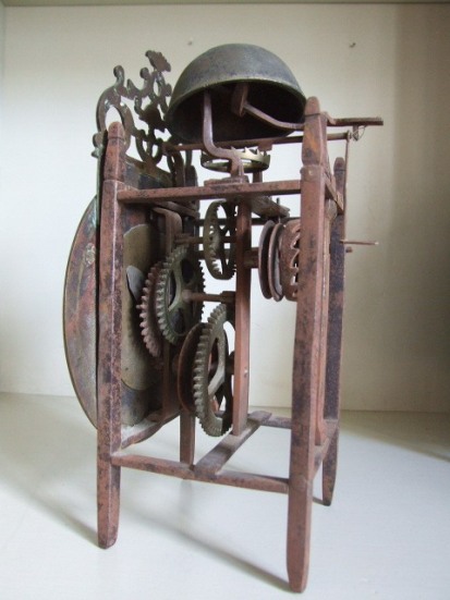 Een zeer fraaie en 100% originele, ongerestaureerde wekkerlantaarnklok, Frankrijk/Bretagne ca 1720. Museale kwaliteit. Het betreft hier de klok die is afgebeeld op pagina 47 van "Franse lantaarnklokken" van Ton Bollen.