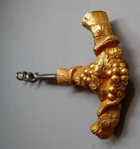 Met druiven en druivenranken gedecoreerd handvat. Zeldzaam. Mooie kwaliteit bronswerk. "Le tire-bouchon est un instrument de bon sens, qui retire l'obstacle au plaisir" - Anonyme - Per stuk.